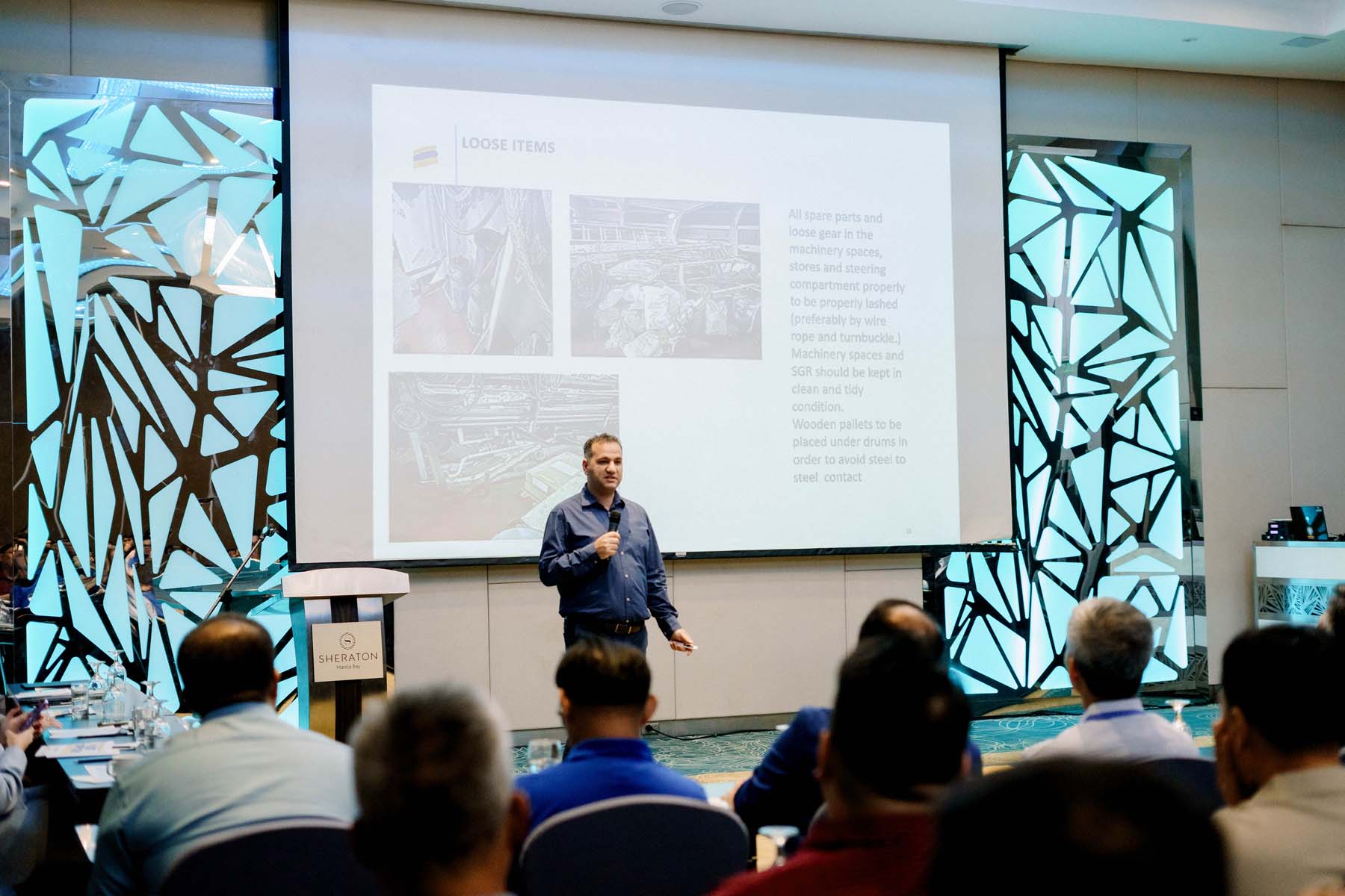 Prominent guests from TMS Group in Athens attended the meeting including Mr. Demetrios Koukoulas Managing Director of TMS Dry / TMS Bulkers / TMS Offshore Services, Capt. Vasileios Kozadinos HSQE Superintendent from TMS Cardiff Gas, Capt. Lambros Apostolatos Marine Superintendent from TMS Dry, Capt. George Sfakianakis Deputy Crew Manager from TMS Tankers, Mr. Vaggelis Pelekanos Fleet & New Building Manager from TMS Tankers, Mr. George Paraskevopoulos HSQE Superintendent from TMS Dry, and Mr. Steve Ainscough Director of MER Solutions, an Australian company providing customized consultancy, incident investigations and undertaking complex feasibility and engineering studies. All guests delivered informative and interesting presentations throughout the day.